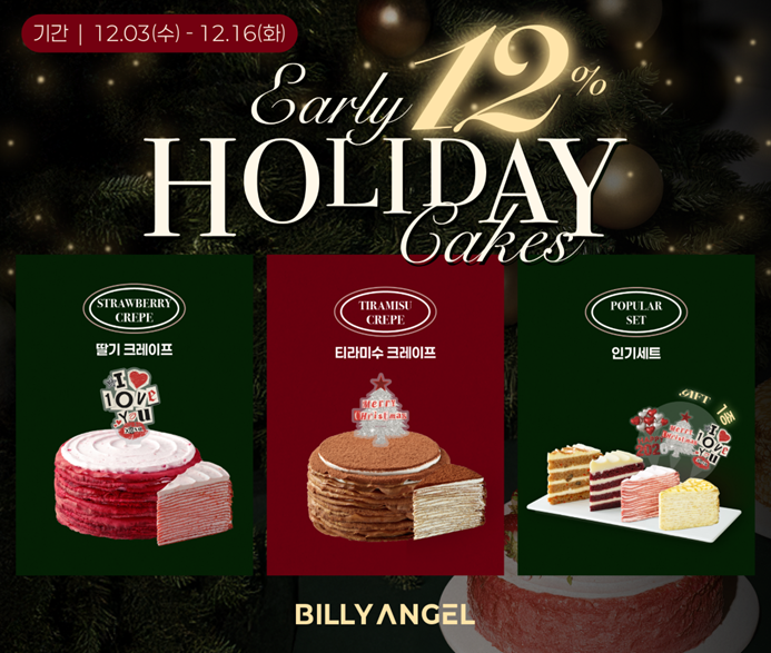 이날부터 오는 16일까지 네이버 브랜드스토어와 빌리엔젤 홈페이지에서 크리스마스 케이크 2차 사전 예약을 진행한다.