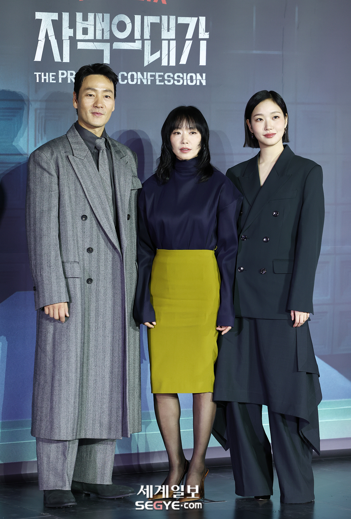 배우 박해수, 전도연, 김고은(사진 왼쪽부터)이 3일 용산 CGV에서 열린 넷플릭스 시리즈 ’자백의 대가’ 언론시사회에 참석해 포즈를 취하고 있다.
