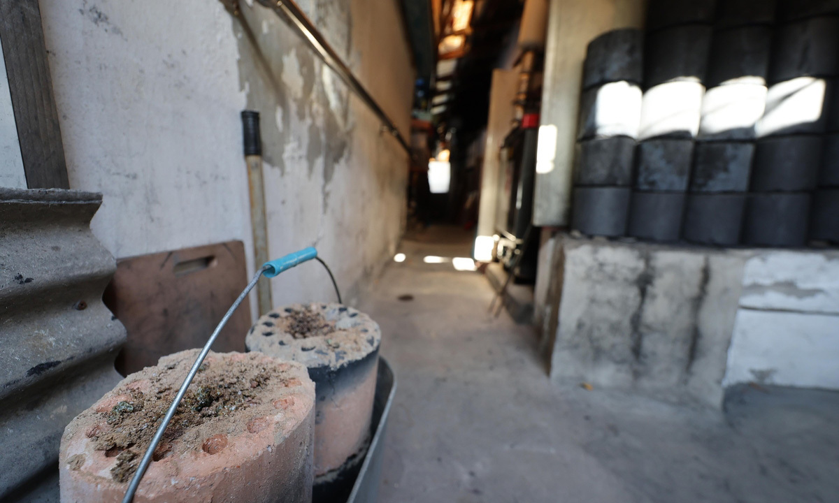 골목을 따라 폭 2m 남짓 통로의 한쪽에는 쌓아둔 연탄 수십장이 놓여 있었고, 맞은편에서는 가동 중인 연탄보일러가 '윙'하는 소리를 내며 냄비의 물을 데우고 있었다.