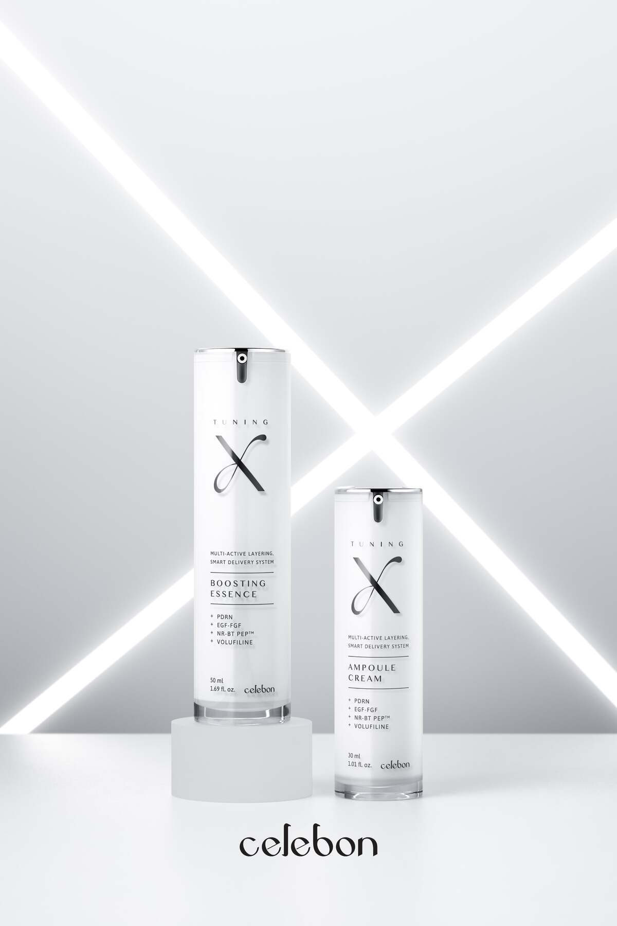 이번 라인은 ‘튜닝 엑스 부스팅 에센스’와 ‘튜닝 엑스 앰플 크림’ 2종으로 구성됐으며, 서울대 출신 연구진이 바르는 백신 연구 과정에서 발견한 ‘세포 투과 펩타이드’를 기반으로 한 4세대 ICT(Intra-Cellular Therapeutics) 침투 기술이 적용된 것이 특징이다.