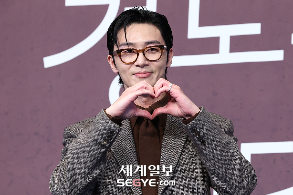 배우 박서준이 4일 서울 구로구 신도림동 더링크호텔 웨딩홀에서 열린 JTBC 토일드라마 ‘경도를 기다리며’의 제작발표회에 참석해 포즈를 취하고 있다.