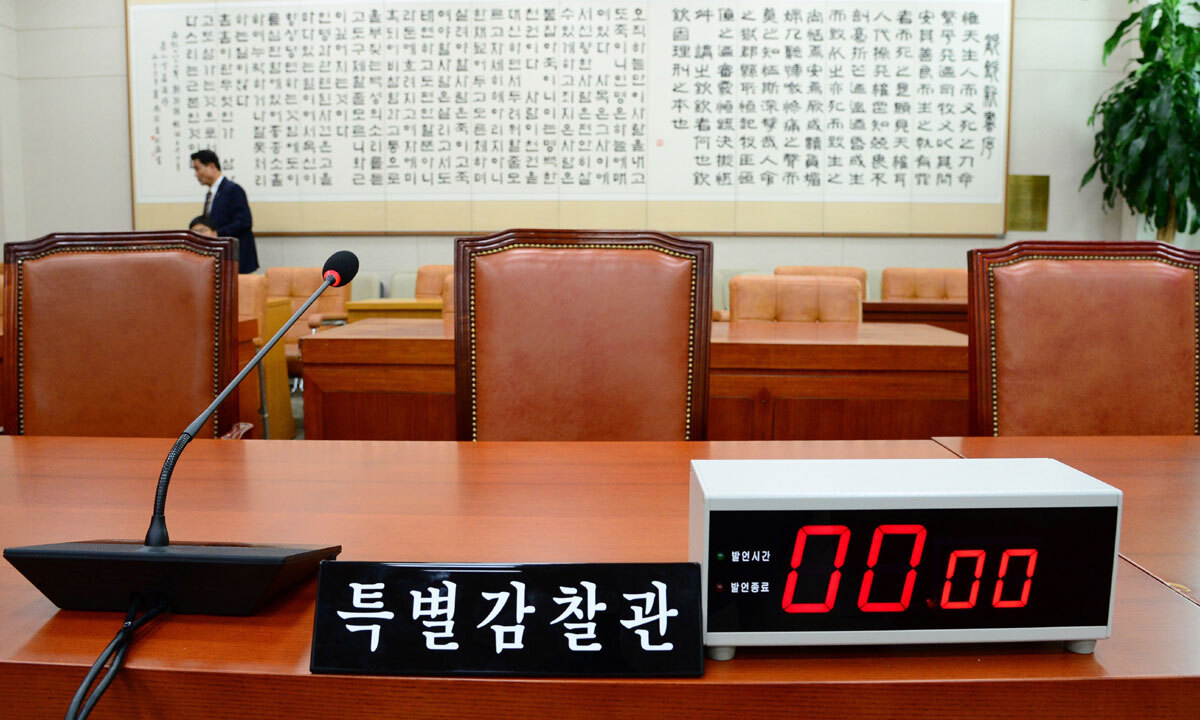 임기 3년의 차관급 공직인 대통령 직속 특별감찰관은 2016년 9월 이래 9년 넘게 공석이다. 사진은 2016년 9월 특별감찰관실에 대한 국회 법사위 국정감사를 앞두고 특별감찰관 자리가 텅 비어 있는 모습. 세계일보 자료사진