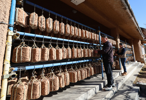 4일 강원 강릉시 성산면의 한 전통장류를 생산하는 농가 처마에서 전통 방식으로 만든 메주가 대관령 바람과 햇볕을 맞으며 익어가고 있다.