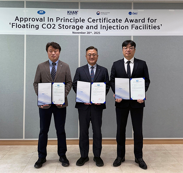 칸플랜트(주)(대표 현장환)는 한국선급(KR)으로부터 ‘해상 부유식 LCO₂ 저장·주입 시설’ 3종에 대한 개념승인(AIP : Approval In Principle)을 획득하고 인증서 수여식을 가졌다고 5일 밝혔다.