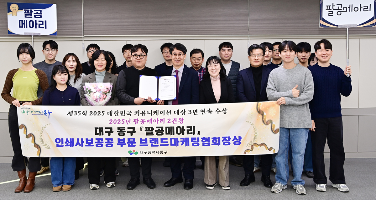 대구 동구 구정소식지 ‘팔공메아리’가 ‘2025 대한민국 커뮤니케이션 대상’에서 인쇄사보 공공부문 브랜드마케팅협회장상을 받았다고 4일 밝혔다.