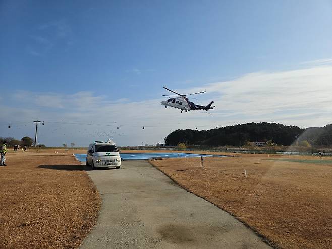 이 근로자는 작업 중 갑자기 어지러움과 흉통을 호소해 울진군의료원에서 검사를 받았고, 심혈관질환 의심 소견에 따라 안동병원 응급 의료진이 탑승한 헬기로 이송돼 현재 회복 절차를 밟고 있다.