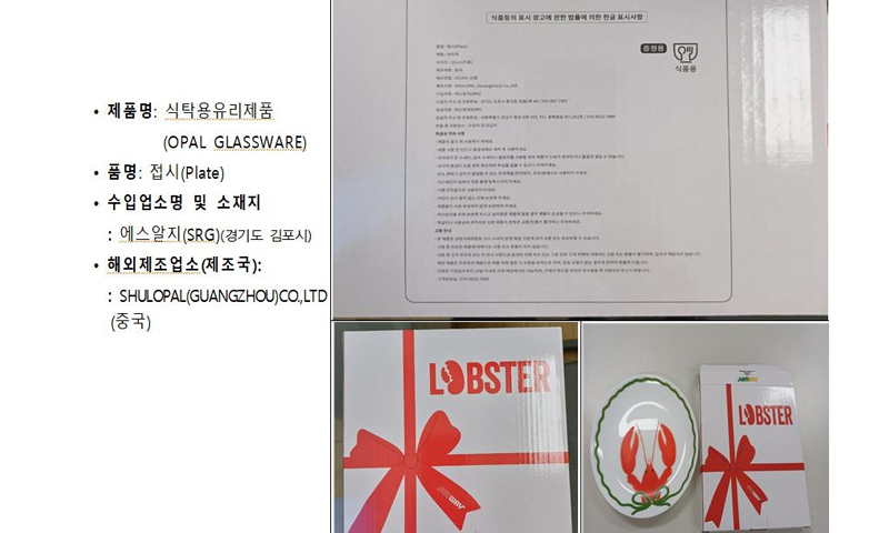 회수 대상은 제품 표시사항에 품명이 '접시(Plate)'라고 표시된 제품으로, 카드뮴이 4.2~5.3㎍/㎠ 검출됐다.