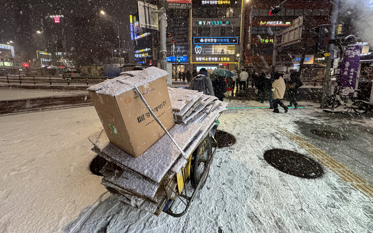 큰 눈 내린 4일 저녁 퇴근길, 시민들의 모습과 교통 체증 모습을 카메라에 담았다.
