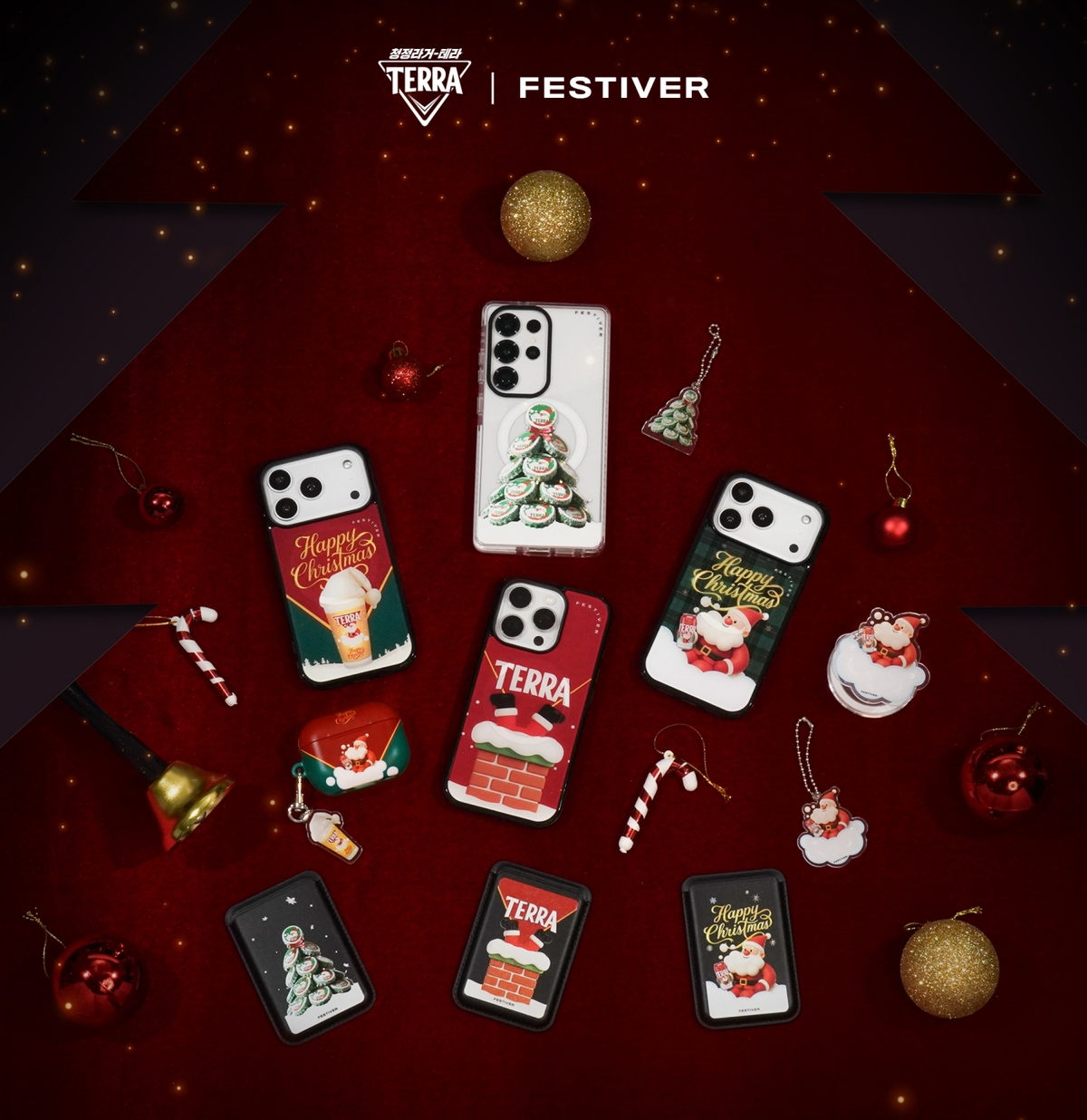 ‘페스티버x테라 크리스마스 에디션’ 13종은 테라의 청정한 이미지를 배경으로 산타가 맥주를 들고 있는 일러스트, 크리스마스 모자를 쓴 테라 맥주잔, 테라 병뚜껑을 활용한 트리 등 연말 분위기를 담은 디자인을 적용한 것이 특징이다. 매 시즌 새로운 비주얼을 선보여온 테라의 한정판 굿즈 라인업에, 모바일 액세서리라는 친근한 형태로 접근성을 더했다.