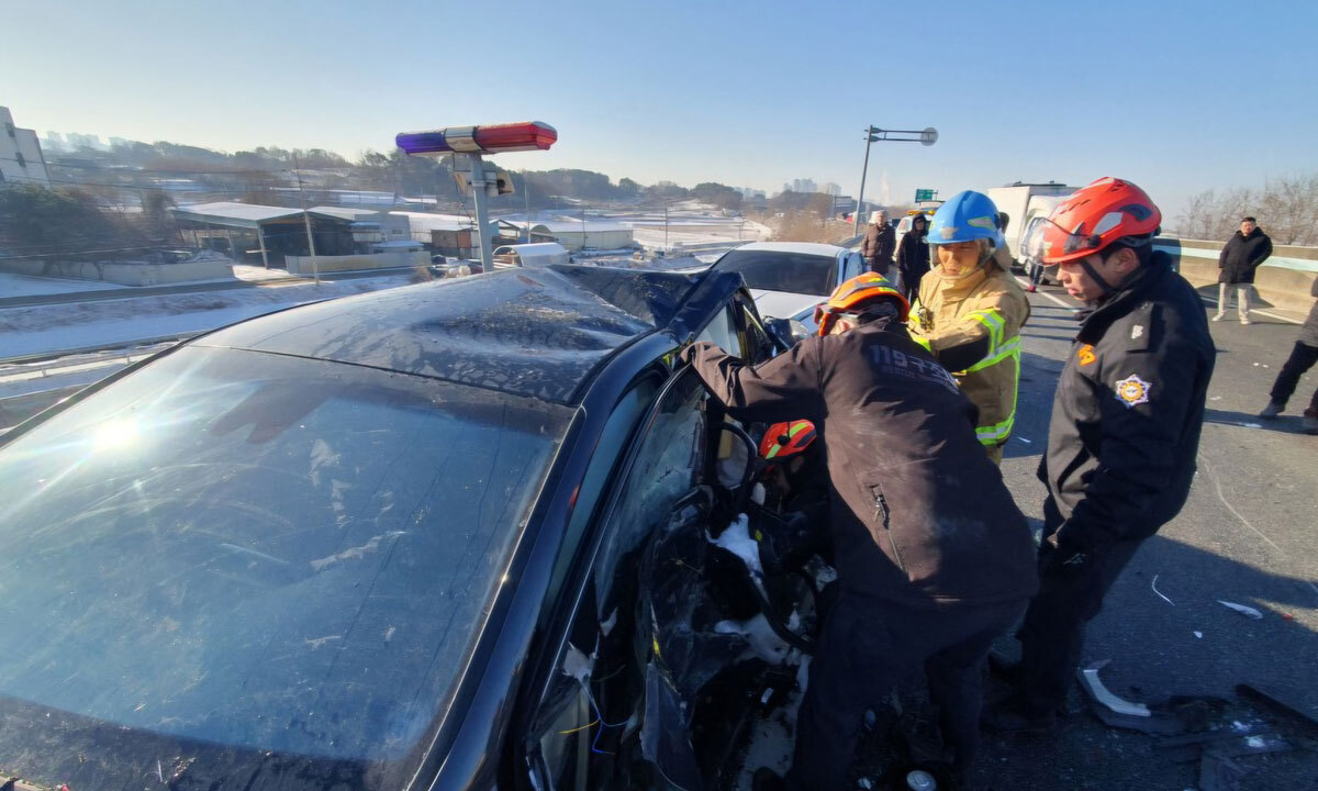 경찰은 도로 살얼음(블랙아이스)으로 인해 사고가 시작된 것으로 보고 정확한 사고 경위를 조사하고 있다.