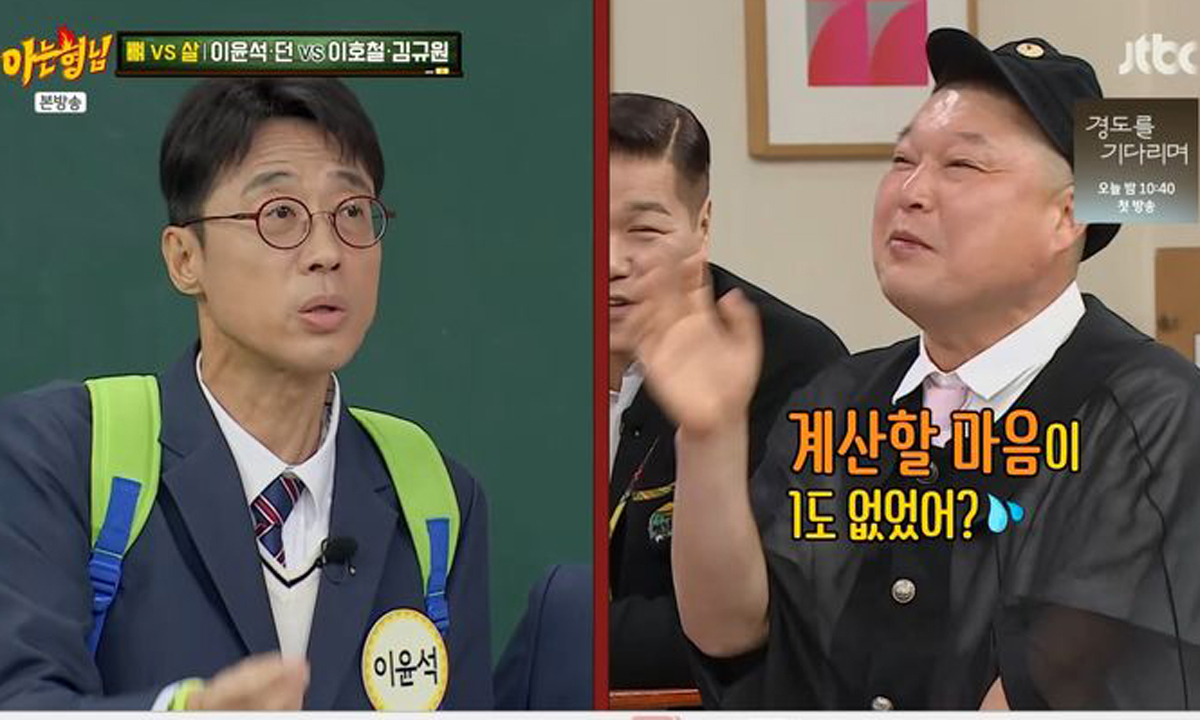 이날 이윤석은 멤버들이 "뭔가 불편해 보인다"고 하자 "호동이랑 짚고 넘어가고 싶은 게 있다"고 운을 뗐다. 그는 "예전에 우리가 회식을 같이 한 적이 있다. 프로그램 끝나고 아니면 시상식 끝나고 둘 중에 하나다. 사람들이 엄청 많이 와서 금액이 꽤 많이 나왔을 것"이라고 말했다.