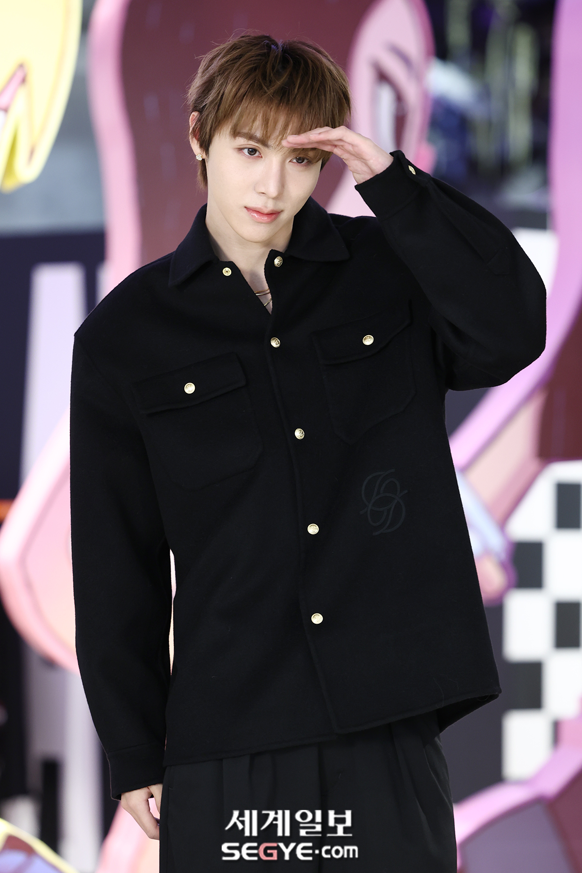그룹 올데이 프로젝트 우찬이 8일 오전 서울 성동구 모처에서 열린 첫 EP 타이틀곡 'LOOK AT ME'(룩앳미) 포토콜 행사에 참석해 포즈를 취하고 있다.