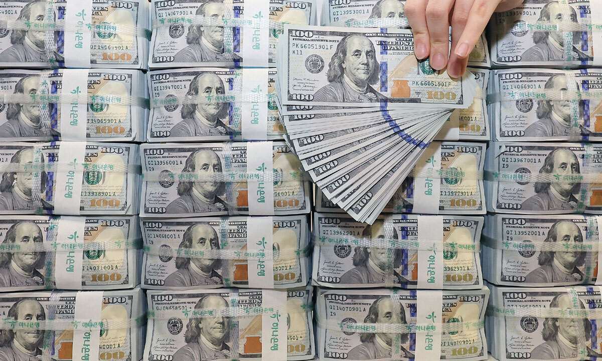 서울 중구 하나은행 위변조대응센터에서 은행 관계자가 달러화를 정리하는 모습. 뉴스1