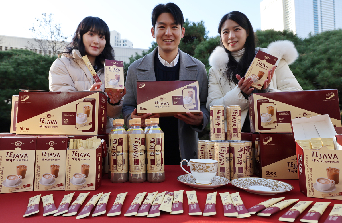 동아오츠카 직원들이 9일 서울 동대문구 천호대로 동아오츠카 서울사무소에서 프리미엄 밀크티 '데자와' 분말스틱을 소개하고 있다. 오리지널 밀크티 브랜드인 '데자와'가 캔과 페트에 이어 언제 어디서나 즐기는 분말스틱 형태로 새롭게 출시했다. '데자와'는 TEA(티)와 JAVA(자바)의 합성어로, 인도네시아 자바섬에서 채취한 어린 찻잎으로 만든 홍차 추출 밀크티다.