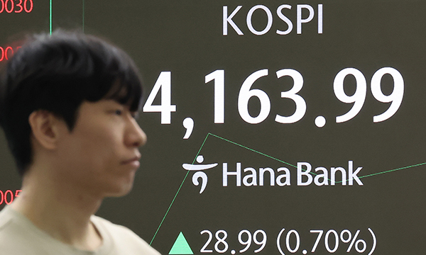 이날 오전 10시 현재 코스피는 전장보다 26.52포인트(0.64%) 오른 4161.52을 나타내고 있다. 지수는 28.32포인트(0.68%) 오른 4163.32로 장을 연 뒤 오름폭을 조절 중이다. 수급 주체별로 보면 유가증권시장에서 기관이 2799억원, 외국인이 362억원 순매수하며 지수 상승을 이끌고 있다. 개인은 3032억원 순매도 중이다.