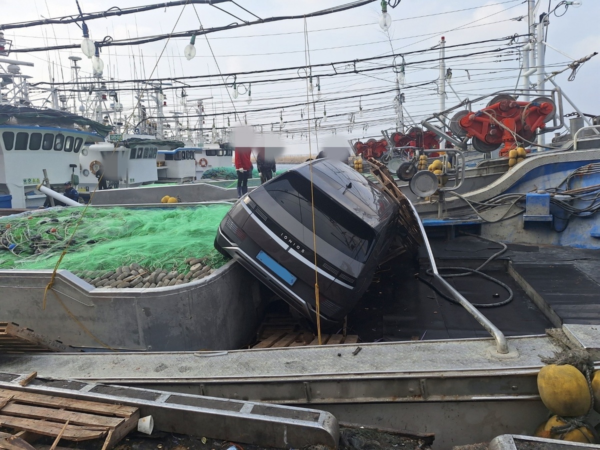 11일 오후 2시 50분쯤 제주 제주시 한림항 한림수협 위판장 인근에서 70대가 몰던 아이오닉5 전기 승용차가 항구에 정박해 있던 어선으로 돌진하는 사고가 발생했다.