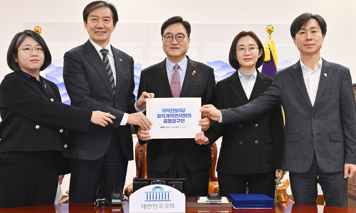 혁신당은 이날 정개특위 구성 여야 합의 관련 개혁·진보 4당 원내대표단 입장문을 통해 “민주당·국민의힘 원내지도부 정개특위 구성 합의 자체는 환영할 만한 일”이라면서도 “민주당 9명, 국민의힘 8명, 비교섭단체 1명 구성은 매우 유감”이라고 밝혔다. 이들은 이날 우원식 국회의장을 예방해서도 “정개특위에서 거대 정당 요구만 관철된다면 정치개혁인지 근본적인 의문이 있다”고 전했다.