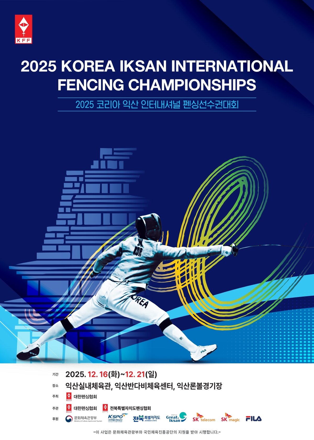 14일 익산시에 따르면 ‘2025 코리아 익산 인터내셔널 펜싱선수권대회’가 오는 16일부터 21일까지 6일간 익산실내체육관과 반다비 체육센터에서 열린다. 올해 처음 신설된 이번 대회는 문화체육관광부가 주최하고, 대한펜싱협회와 전북도펜싱협회가 주관한다.