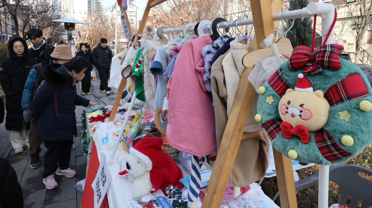 14일 서울 노원구 공릉숲길에서 열린 ‘경춘선 공릉숲길 크리스마스 마켓’을 찾은 시민들이 매장을 둘러보고 있다.