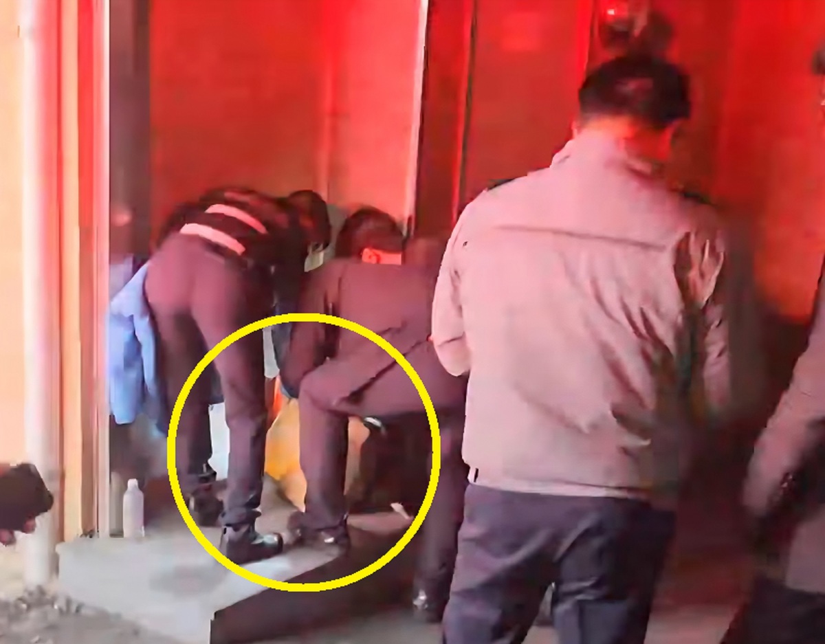 지난 14일 동국대 서울캠퍼스 인근 건물 앞에 버려진 신생아를 살피는 경찰 관계자들. MBN 보도화면 캡처