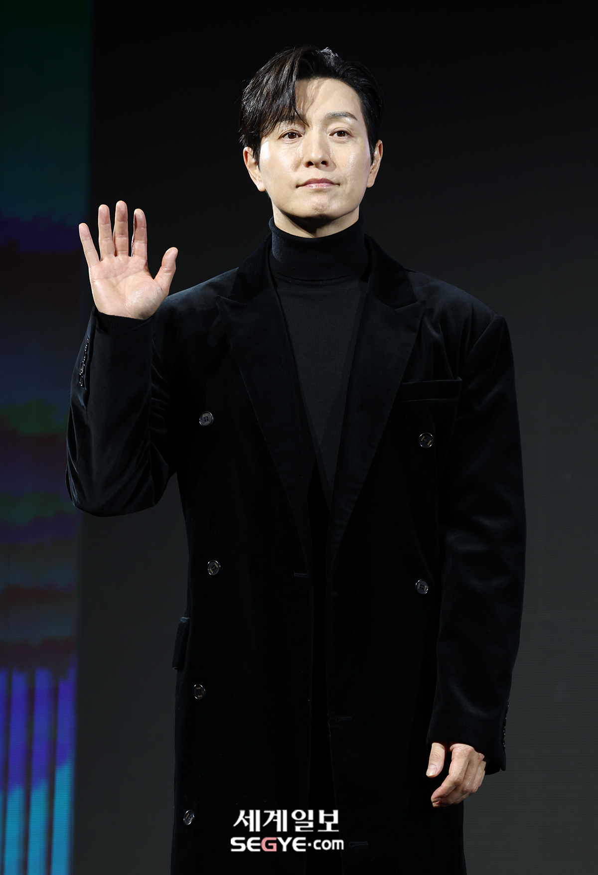 배우 정성일이 15일 서울 강남구 삼성동 그랜드 인터컨티넨탈 서울 파르나스에서 열린 디즈니+의 오리지널 시리즈 ’메이드 인 코리아’의 제작발표회에 참석해 포즈를 취하고 있다.