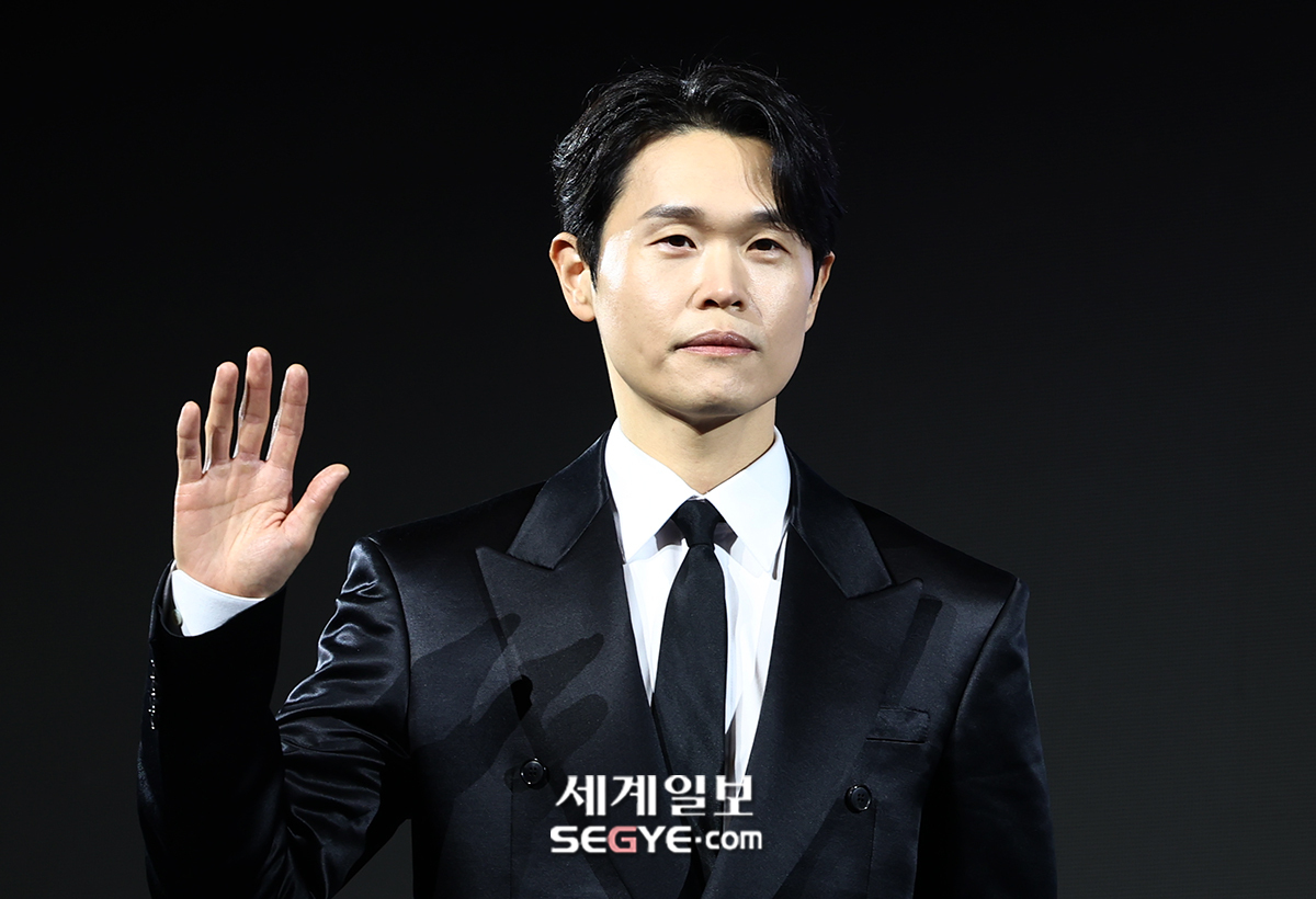 배우 강길우가 15일 서울 강남구 삼성동 그랜드 인터컨티넨탈 서울 파르나스에서 열린 디즈니+의 오리지널 시리즈 ’메이드 인 코리아’의 제작발표회에 참석해 포즈를 취하고 있다.