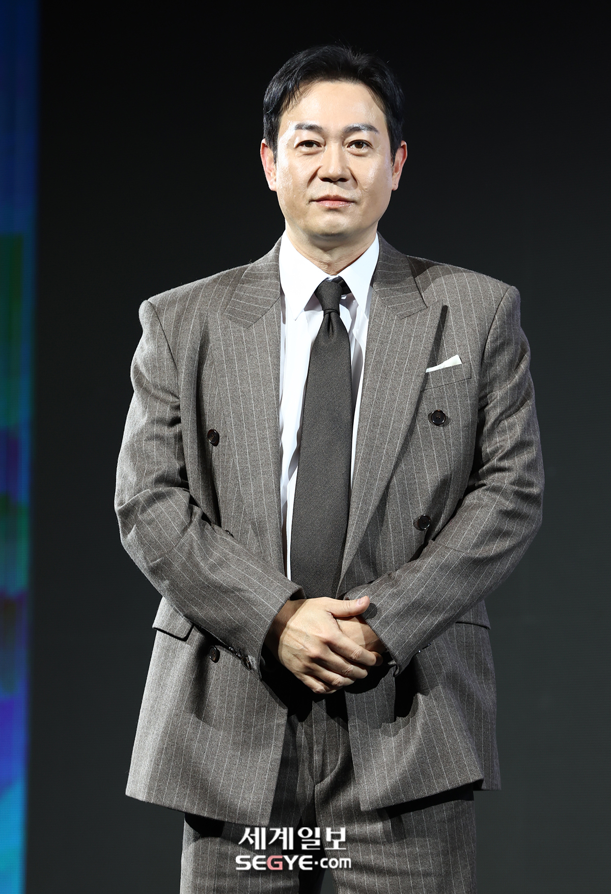 배우 박용우가 15일 서울 강남구 삼성동 그랜드 인터컨티넨탈 서울 파르나스에서 열린 디즈니+의 오리지널 시리즈 ’메이드 인 코리아’의 제작발표회에 참석해 포즈를 취하고 있다.
