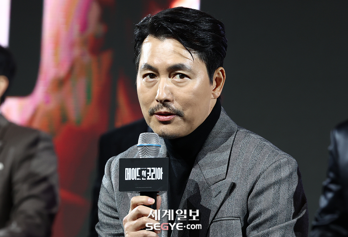 정우성은 혼외자 출산과 결혼 등 가족사의 변화로 인해 현장에서 촬영하는데 어려움이 없었냐는 질문에 “재밌는 작품으로 다가가길 원한다. 어떤 질문인지 알겠지만 오늘 ‘메이드 인 코리아’의 여러 배우들이 함께 모인 자리라 사적인 변화에 대한 이야기를 길게 말씀드리지 못해서 이해를 부탁드린다”라고 조심스럽게 말했다.