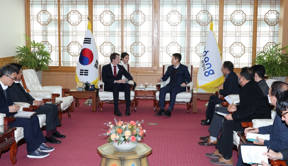 경북 포항시는 15일 북극경제이사회(AEC) 매즈 크비스트 프레데릭센 사무총장이 포항시청을 방문, 이강덕 포항시장 및 관련 부서 국·과장과 함께 지속가능한 북극권 협력방안을 논의했다고 밝혔다.