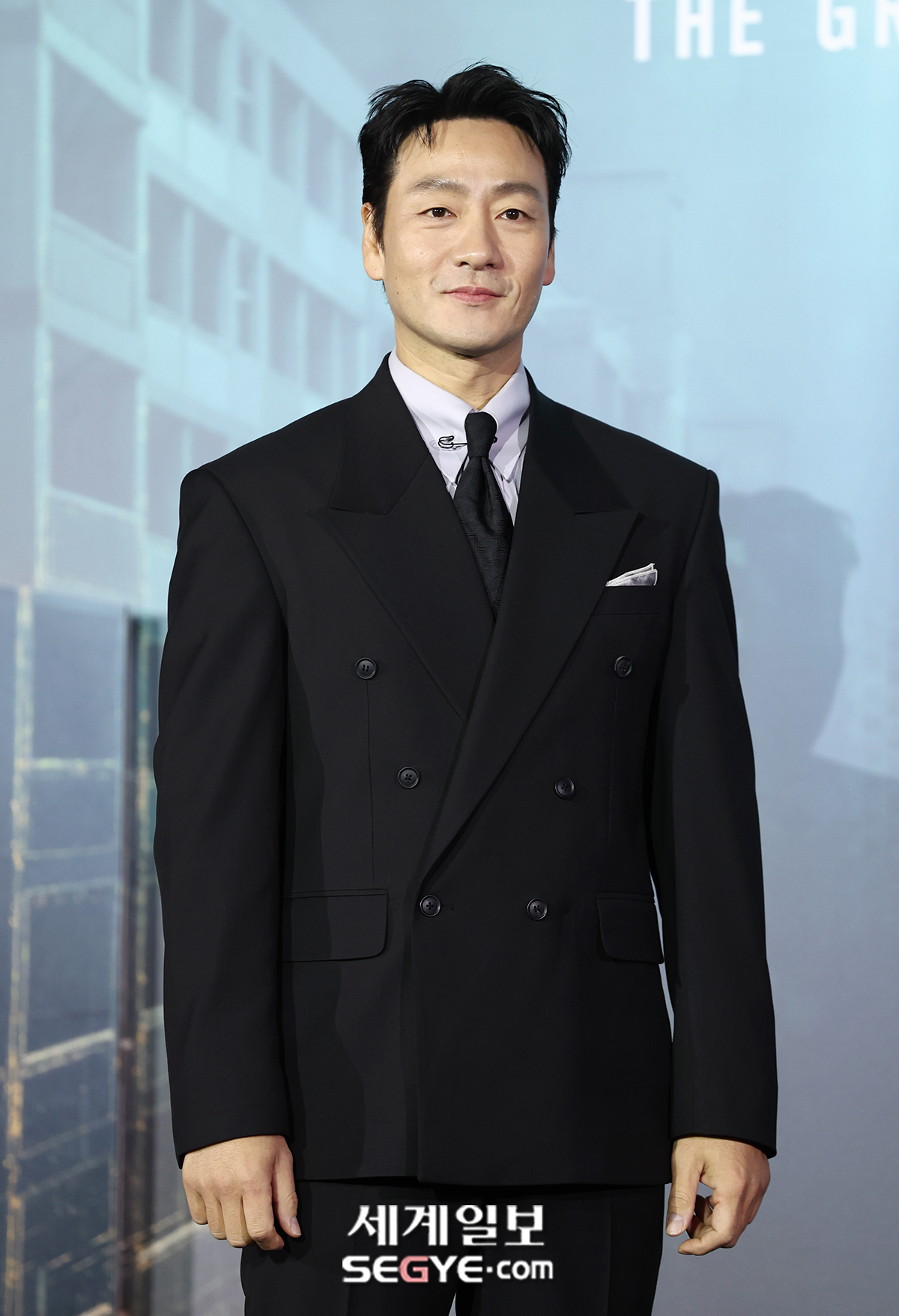 배우 박해수가 16일 서울 용산 CGV에서 열린 넷플릭스 영화 ’대홍수’의 제작보고회에 참석해 포즈를 취하고 있다.