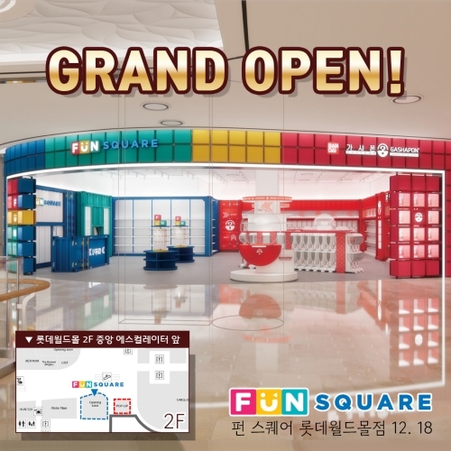 반다이남코코리아는 오는 12월 18일 잠실 롯데월드몰 2층에 새로운 직영 브랜드 매장 ‘펀 스퀘어(FUN SQUARE)’를 공식 오픈한다고 밝혔다. ‘펀 스퀘어(FUN SQUARE)’는 재미를 뜻하는 ‘펀(FUN)’과 광장을 의미하는 ‘스퀘어(SQUARE)’를 결합해 쇼핑의 매력과 즐거움을 한 공간에서 경험할 수 있도록 기획된 복합 엔터테인먼트형 매장이다.