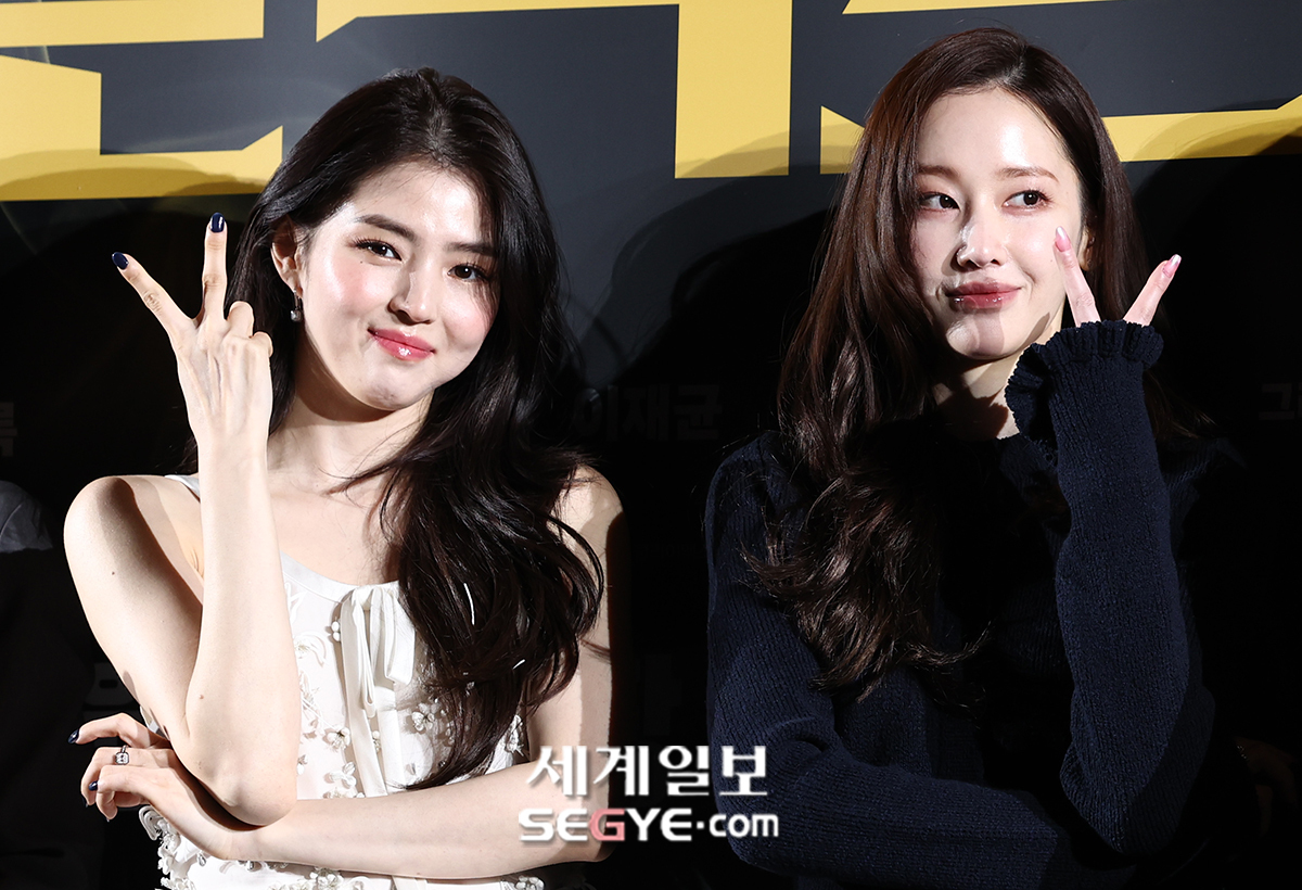 배우 한소희(사진 왼쪽)와 전종서가 16일 서울 강남구 삼성동 메가박스 코엑스에서 열린 영화 ’프로젝트 Y’의 제작보고회에 참석해 포즈를 취하고 있다.