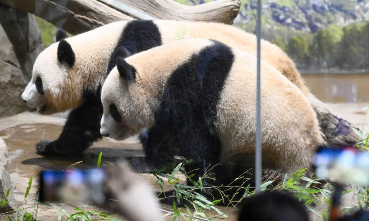 사람들은 단 1분간 쌍둥이 판다를 관람하기 위해 2시간 넘게 줄을 섰다. 이들은 주어진 1분 동안 쌍둥이 판다의 이름을 부르고, 판다들이 대나무를 뜯어먹거나 움직이는 모습을 촬영했다.