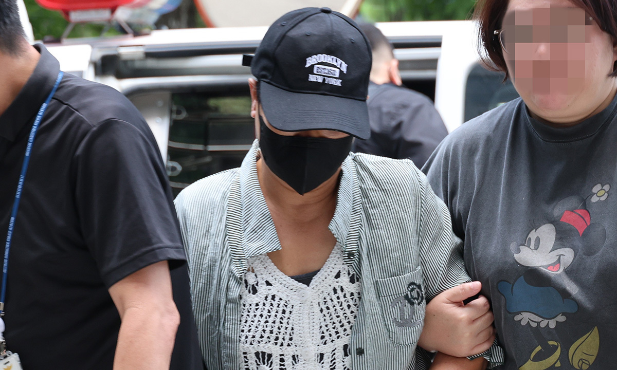 남편의 신체 중요 부위를 절단해 살해하려 한 혐의를 받는 50대 여성이 8월 2일 구속 전 피의자 심문(영장실질심사)이 열리는 인천지법에 들어서고 있다. 연합뉴스