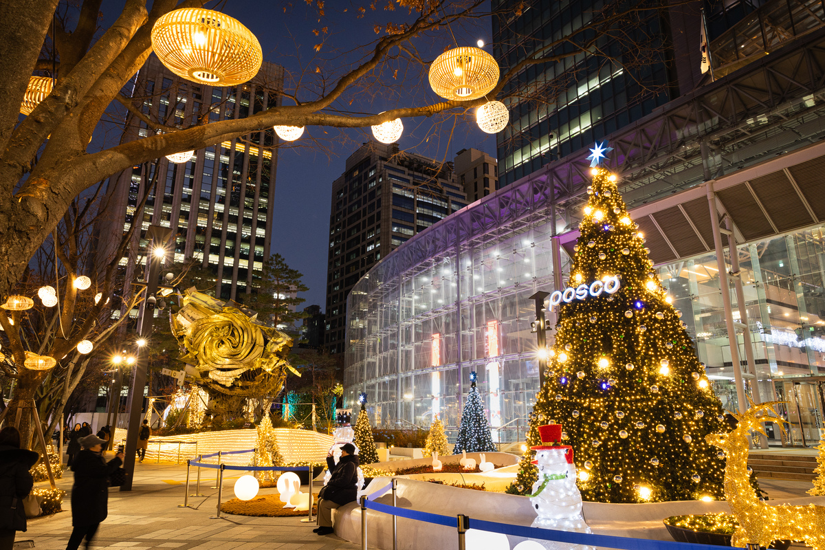 한편 포스코미술관이 위치한 포스코센터는 연말 분위기가 물씬 풍기는 나무와 눈사람, 조명 등을 활용해 건물 외부와 내부에 경관을 조성해 또다른 재미를 주고 있다.