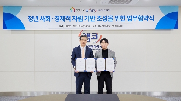 재단법인 청년재단(이사장 오창석, 이하 ‘재단’)이 한국자산관리공사(사장 정정훈, 이하 ‘캠코’)와 19일 서울 강남구 캠코 양재타워에서 ‘청년의 사회ㆍ경제적 자립 기반 마련을 위한 업무협약(MOU)’을 체결했다.