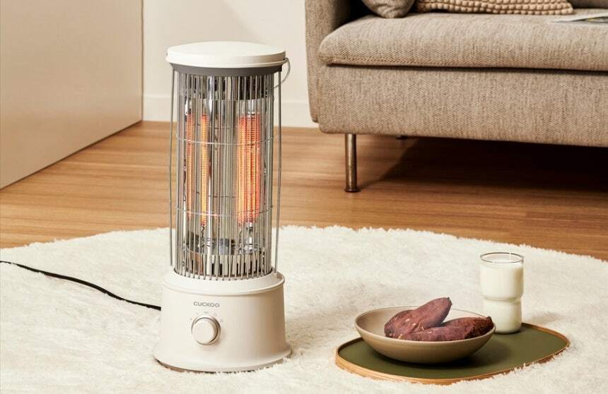 '쿠쿠 카본 전기 히터' 순도 99.9% 이상의 카본 열선을 탑재해 예열 없이 3초 만에 실내 공기를 빠르게 데우며 복사열 방식으로 적은 에너지로도 우수한 난방 효과를 제공한다.