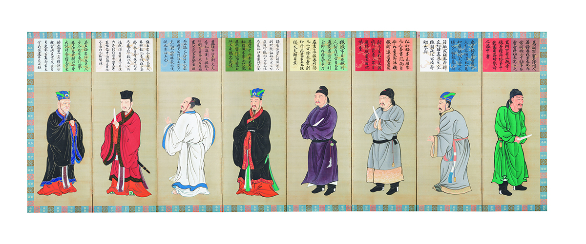 일본 궁정의 정전(正殿)인 시신덴 어좌 뒤편에 설치됐던 장지문 회화는 단순한 장식이 아니라 공간을 구획하고 시선을 통제하는 장치이기도 하다. 장지문에 그려진 중국 성현 32인은 당나라 문화의 영향을 받은 뒤 긴 시간을 이어온 일본 궁정 문화의 전통과 특색을 보여주는 주요 유물로 여겨진다.