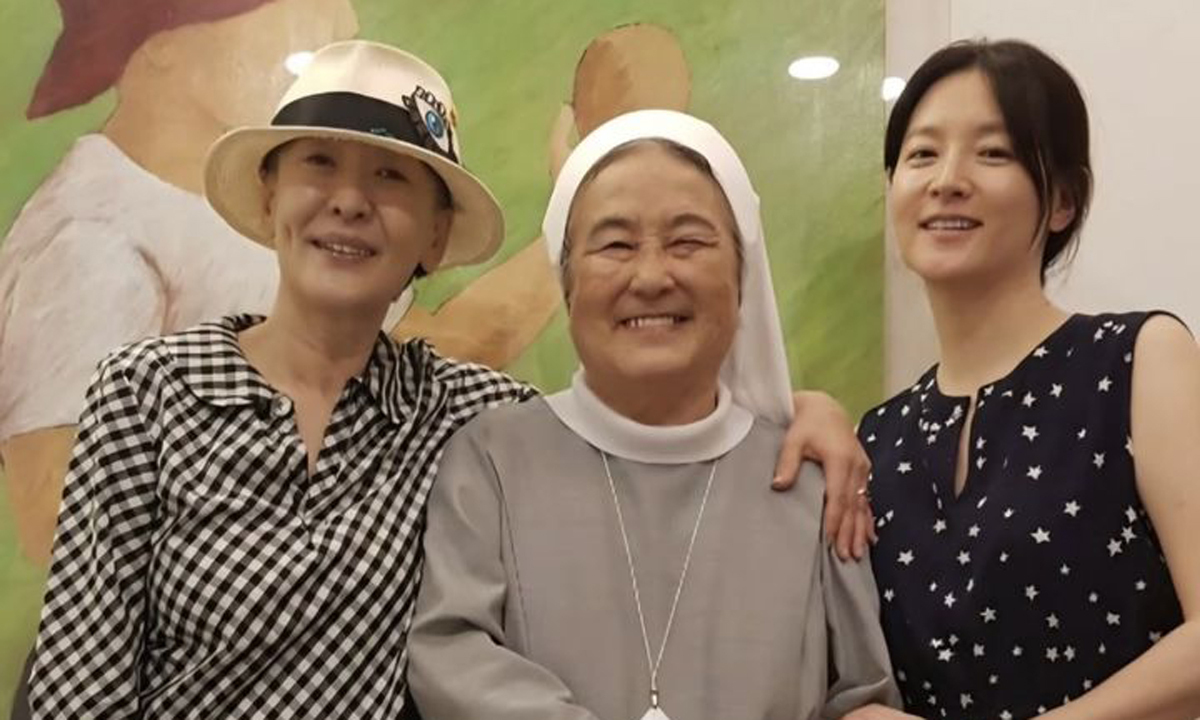 사진 속 이영애는 윤석화와 함께 웃고 있다.