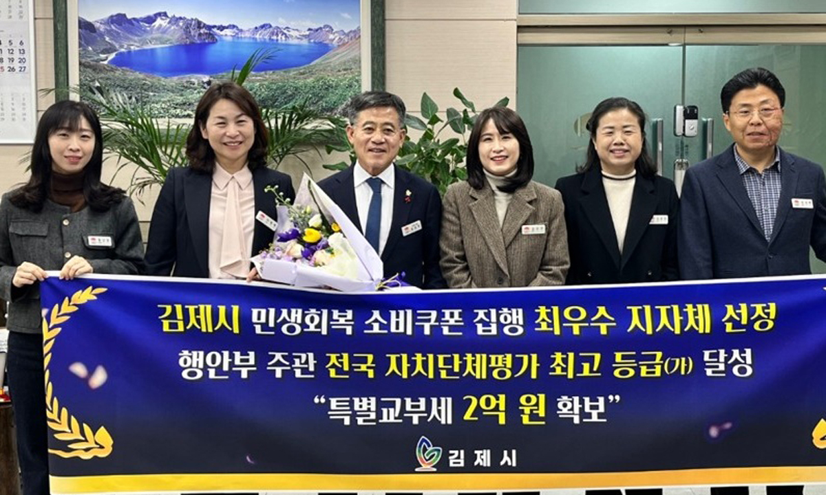 정성주 김제시장은 “이번 성과는 시민들의 적극적인 참여와 현장 공무원들의 신속한 대응이 함께 만들어낸 결과”라며 “앞으로도 민생경제 회복과 지역경제 활성화를 위한 정책을 더욱 촘촘히 추진해 나갈 계획”이라고 말했다.