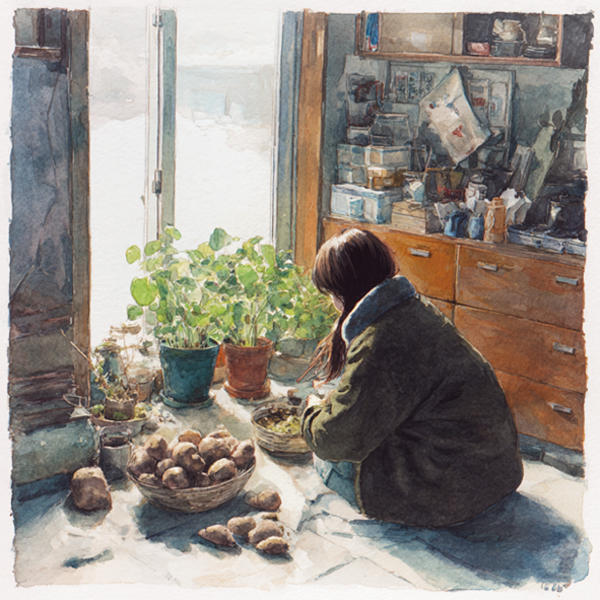 어떤 사람은 고구마와 함께 긴긴 겨울을 날 것이다. 바깥 날씨에 전전긍긍하면서. 고구마는 추위에 약한 작물이니까. 낮은 온도에서 보관하면 금세 병들어 속이 딱딱해지고 시커멓게 변한다고 한다. 시에서 이야기하듯 “고구마 방을 만들어 엄마와 같이” 모시는 사람도 있을 것이다. 그리고 그런 이는 아마 엄마도 고구마도 잃어본 적이 있는 사람일 것이다.