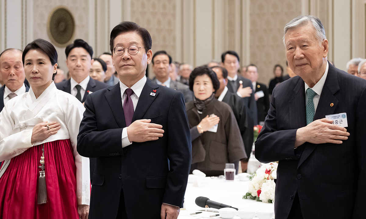 이 대통령은 “많은 어르신이 전쟁의 폐허 위에 맨손으로 집과 기업을 일궈냈고 이역만리 해외에서 땀 흘리며 조국의 재건과 산업화를 위해서 헌신했다. 4·19혁명, 5·18 민주화운동과 6월 항쟁을 거치며 민주주의를 꽃피워냈고 민주정부를 수립하며 평화로운 정권 교체를 이뤘다”고 했다. 그러면서 이 대통령은 “이 자리를 빌려 그간의 노고와 헌신에 깊이 감사하다는 말씀을 드린다”고 덧붙였다.
