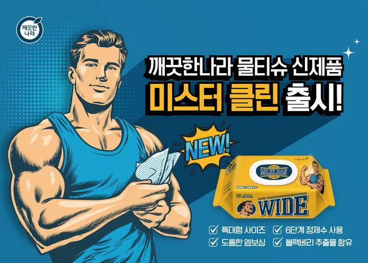 깨끗한나라는 A4 용지와 비슷한 크기의 ‘깨끗한나라 미스터클린 물티슈’를 출시했다고 22일 밝혔다.