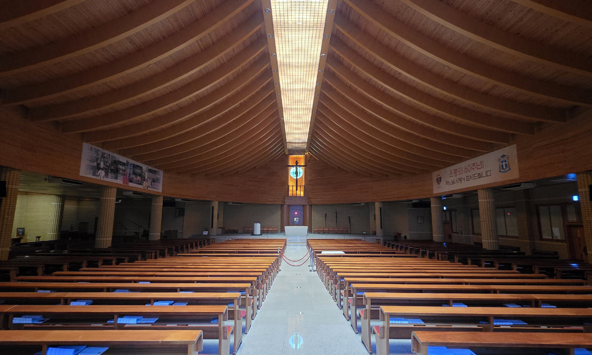 정중앙 가르며 쏟아지는 빛은 십자상 향해