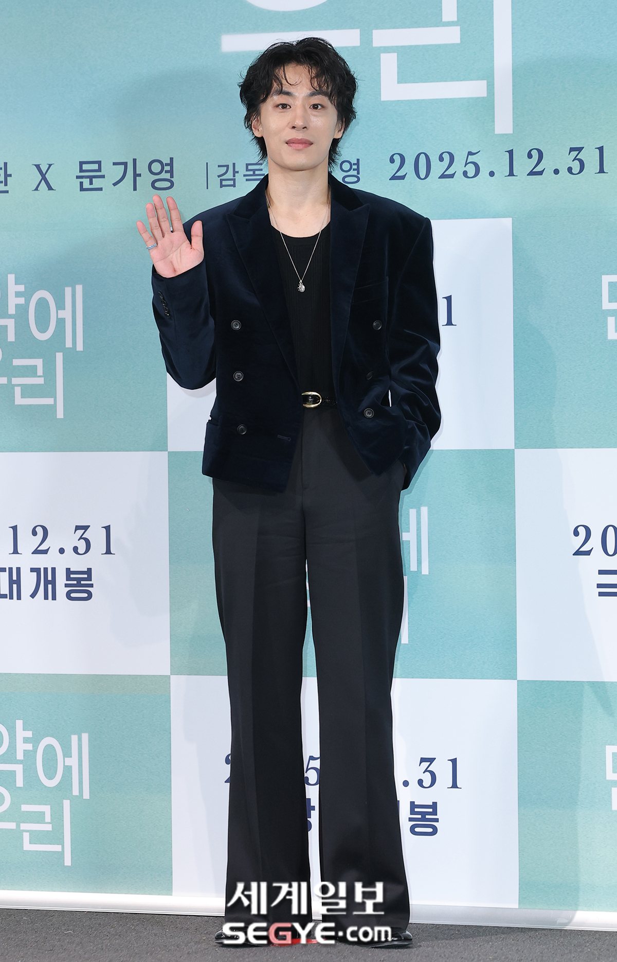 배우 구교환이 24일 용산 CGV에서 열린 영화 ’만약에 우리‘ 제작보고회에 참석해 포즈를 취하고 있다.