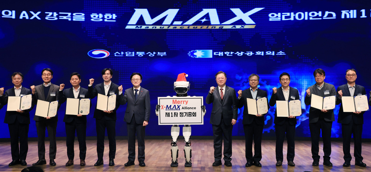 24일 서울 중구 대한상공회의소에서 열린 'M.AX 얼라이언스 제1차 총회'에서 김정관 산업통상부 장관이 유공자 포상 후 수상자들과 기념사진을 촬영하고 있다.
