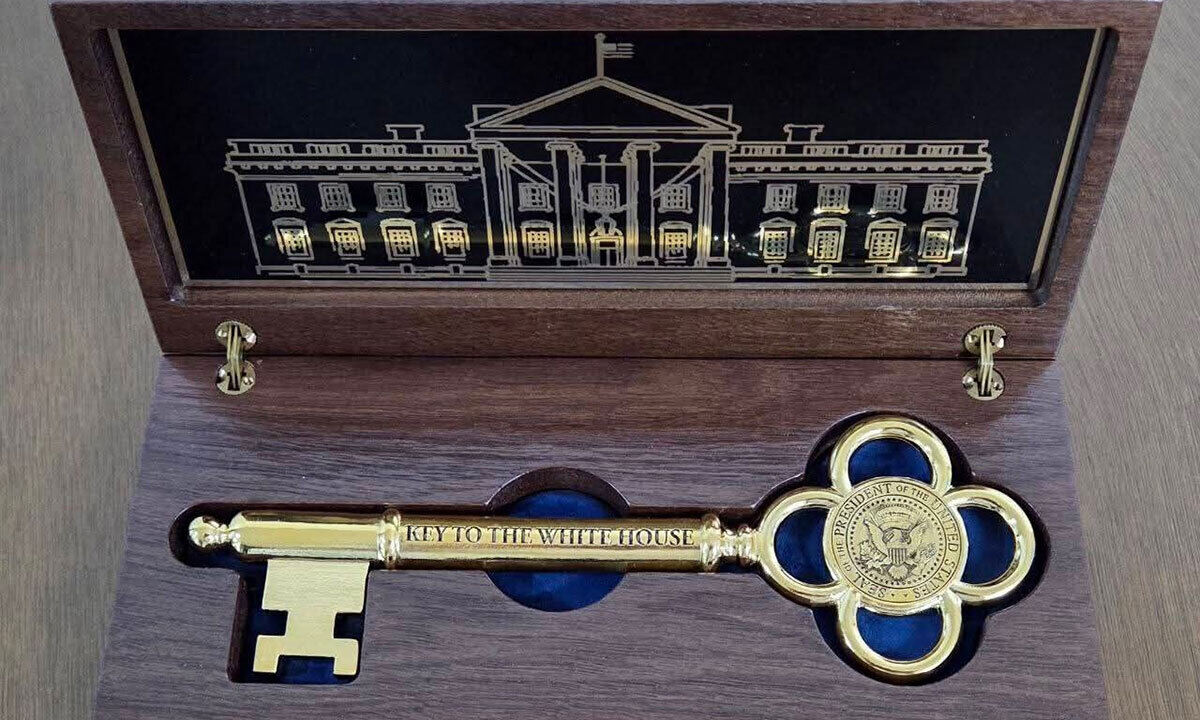 강 비서실장은 “백악관 황금 열쇠는 트럼프 대통령이 특별한 손님에게 주기 위해 직접 디자인한 것으로 대통령 문장과 함께 ‘백악관 열쇠(KEY TO THE WHITE HOUSE)’라는 문구가 각인돼있다”며 “현재까지 베냐민 네타냐후 이스라엘 총리, 아소 다로 전 일본 총리, 일론 머스크 테슬라 CEO, 크리스티아누 호날두 축구 선수가 받은 것으로 알려져 있다”고 설명했다. 트럼프 대통령의 사위인 재러드 쿠슈너가 회고록에 적은 황금 열쇠 관련 일화도 언급했다. 트럼프 대통령이 네타냐후 총리에게 첫 번째 열쇠를 주며 ‘내가 퇴임한 후에도 열쇠를 백악관 정문에서 보여주면 안으로 들여보내 줄 것’이라고 말했다는 내용이다.