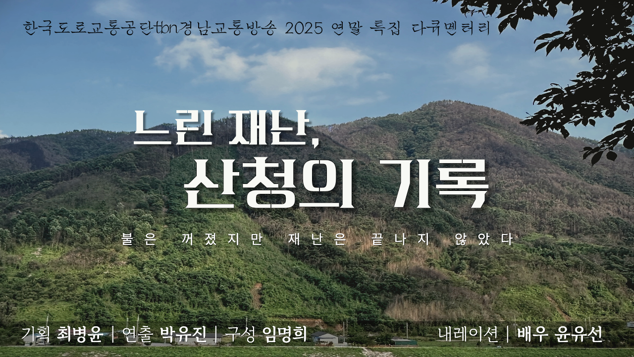 이번 다큐멘터리는 지난 3월 발생한 대형 산불 이후 복구가 채 마무리되지 않은 상황에서 다시 집중호우와 산사태를 겪은 산청 지역의 현실을 조명한다.