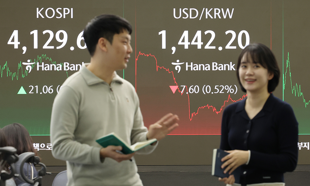 이날 0.1원 상승한 1449.9원으로 출발한 환율은 1450원대까지 소폭 올랐으나 다시 하락했다. 특히 국민연금이 ‘전략적 환 헤지’에 나섰다는 소식이 전해지면서 오전 한때 1429.7원까지 떨어졌다. 환율이 장중 1420원대로 떨어진 것은 지난달 3일(1425.8원) 이후 처음이다. 이날 유가증권시장에서도 외국인이 주식을 약 1조7763억원어치를 사들이며 환율 하락 요인으로 작용했다. 올해 4월9일 기록한 연고점(1484.1원)을 위협하던 환율은 2거래일 동안 43.3원이 떨어지며 안정세를 찾는 흐름이다.