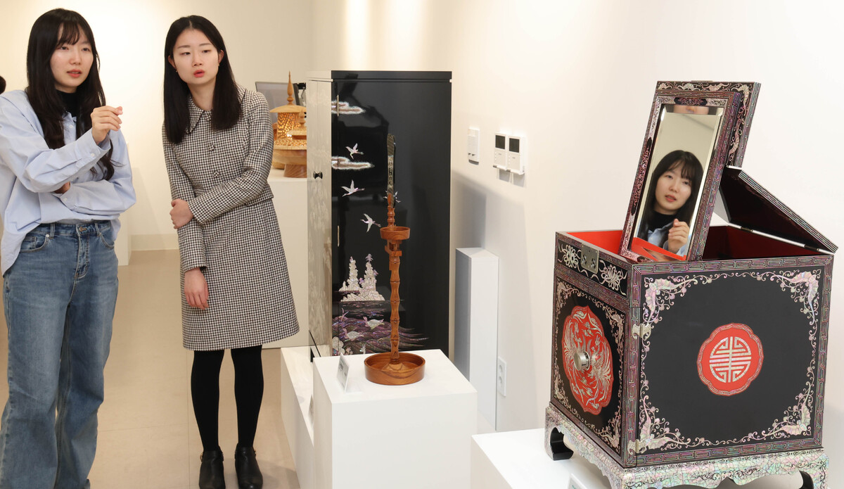 28일 서울 노원구 중계동 불암산아트포레 갤러리를 찾은 관람객들이 《칠의 기록, 시간의 조각》 전시 작품을 감상하고 있다. 한국 옻칠 목공예의 전통과 장인정신을 담은 전국 옻칠 목공예대전 역대 수상작을 전시하는 이번 특별 기획전은 내년 2월 1일까지 열린다.